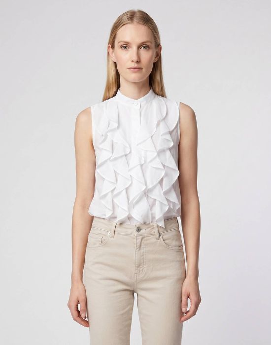 Πλούσια frills στολίζουν το στήθος της μπλούζας.
