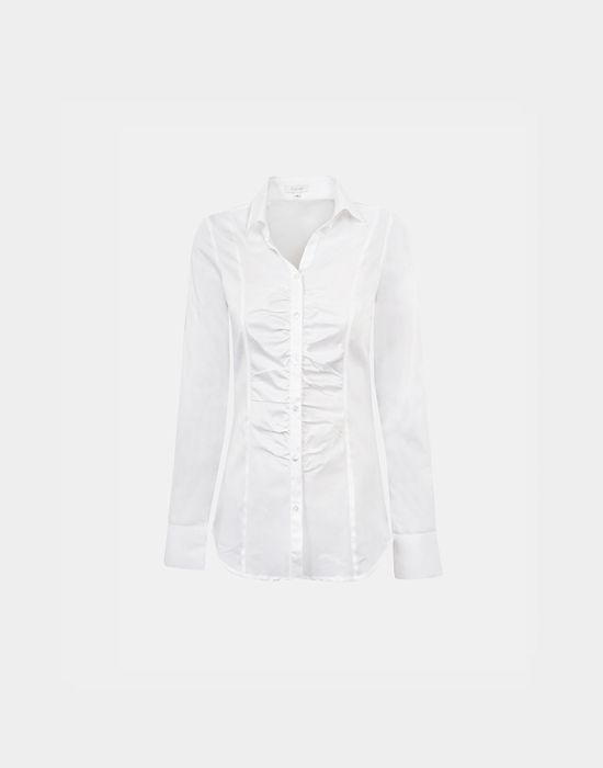 Σχεδιασμένο σε slim fit γραμμή με πλούσιες σούρες μπροστά,κλασικό γιακά και μακρυά cuff μανίκια.