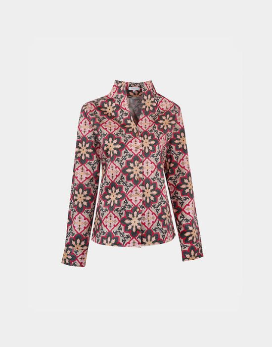 Classy long-sleeved shirt in jacquard print cotton poplin stretch .
