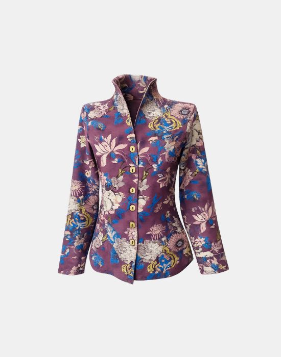 Stand up collar floral print shirt