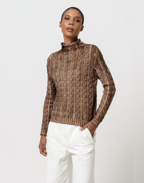 Featuring in a feminine silhouette cut,turtleneck neckline and long sleeves.