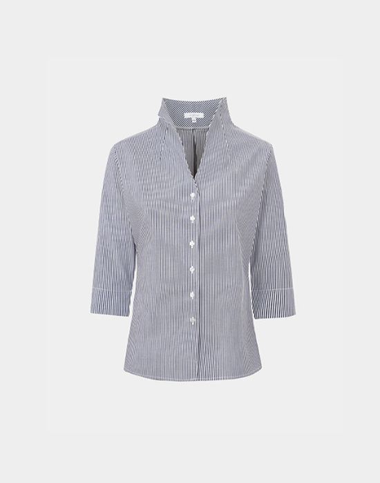 Elegant women's shirt in striped cotton stretch poplin.