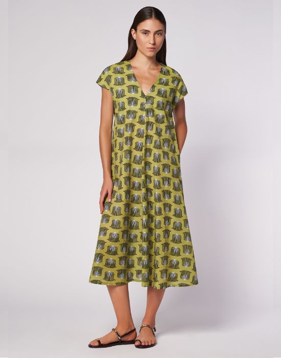 Dress in lightweight printed cotton muslin.